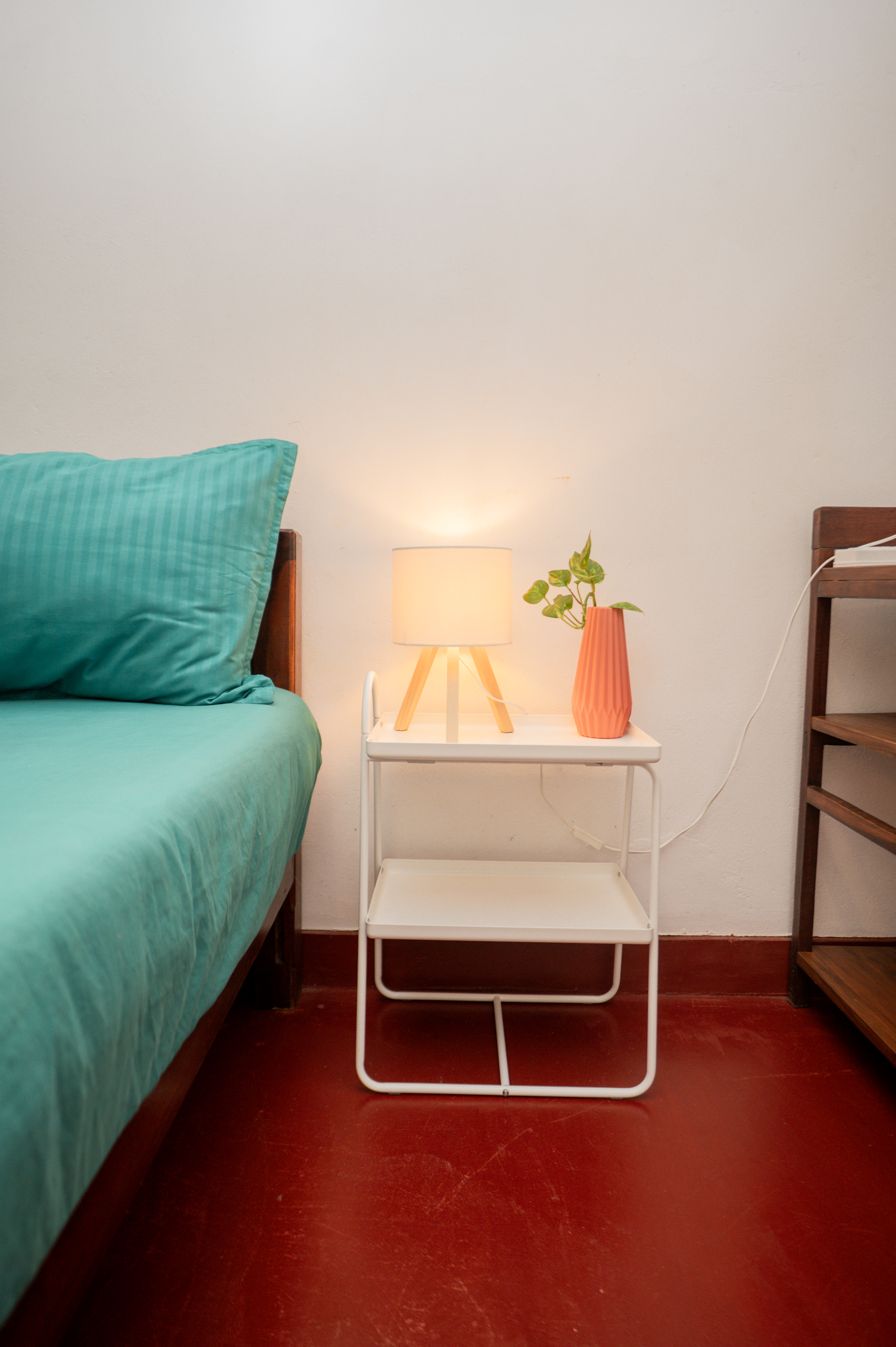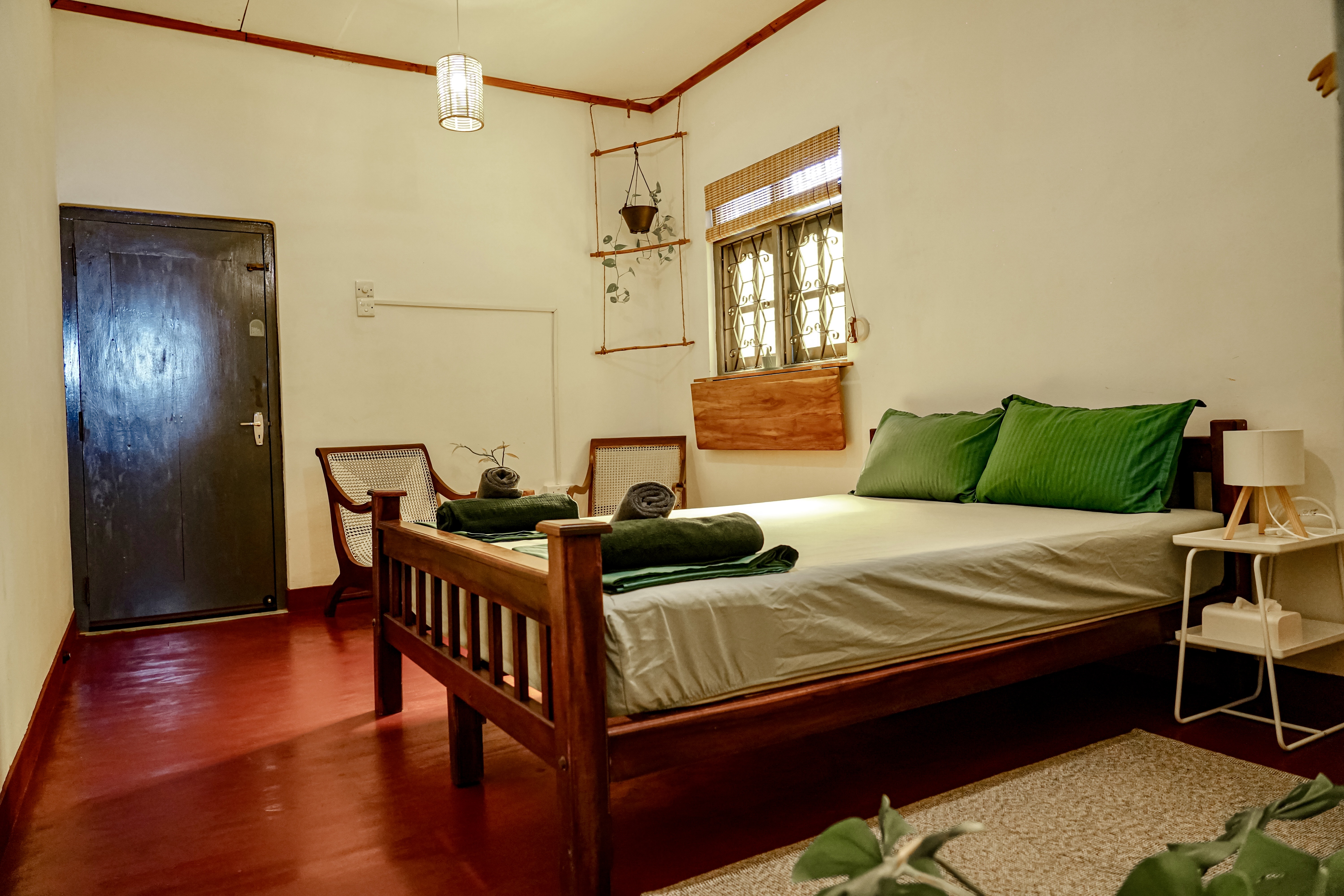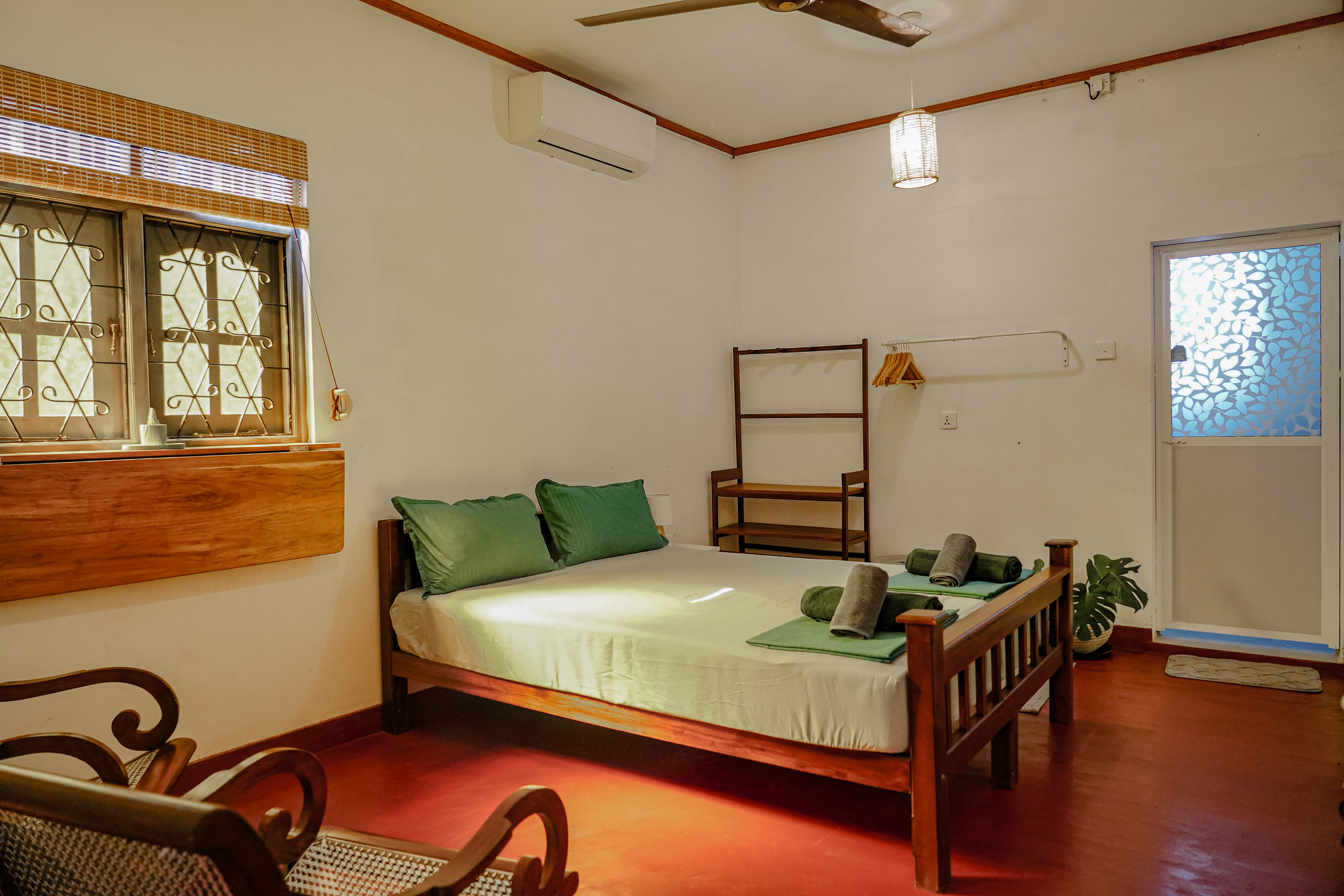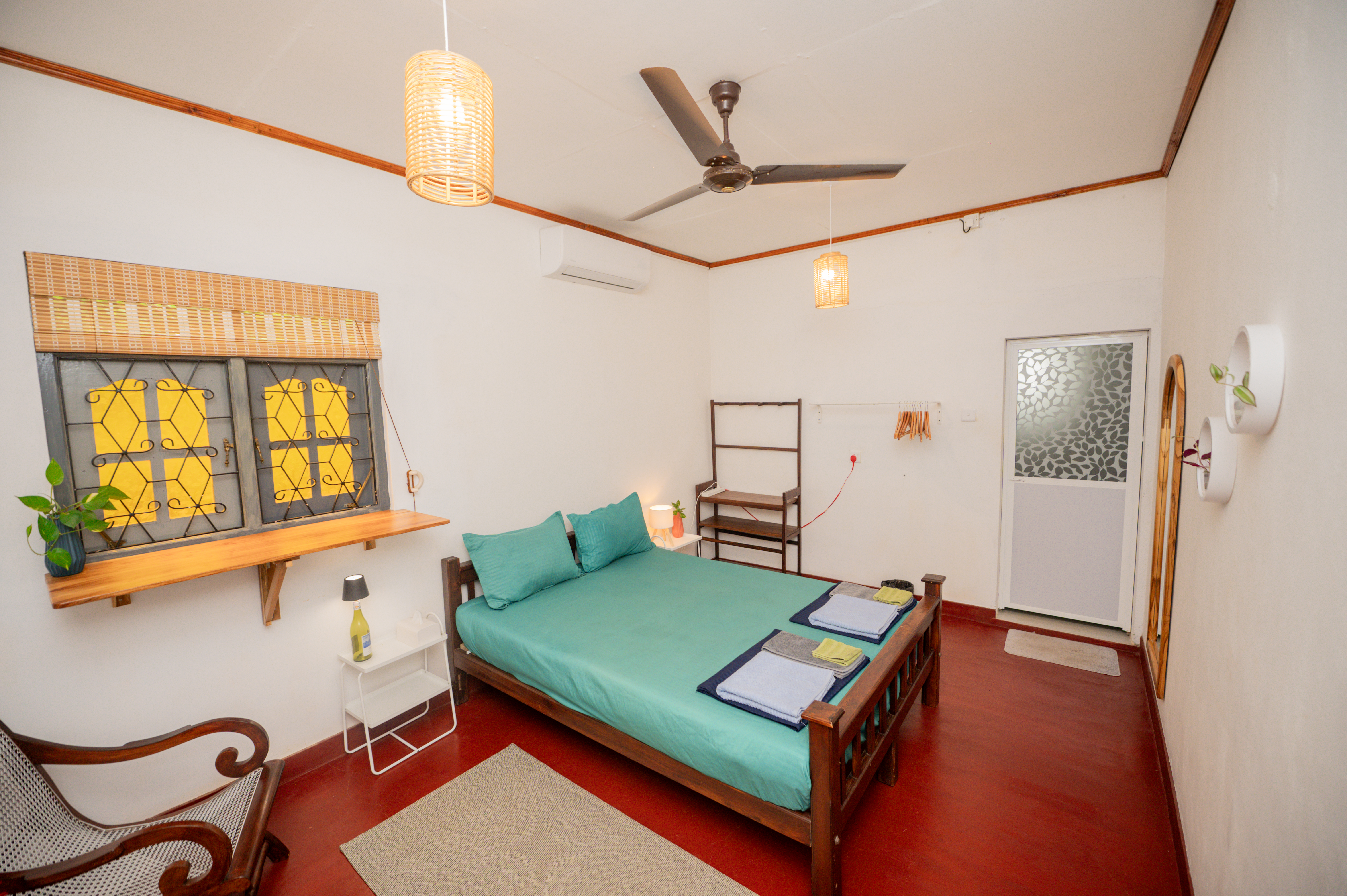 Enjoy your stay in our biggest, but still cozy double room, nestled on the first floor of our coliving surrounded by lush greenery and located close to the ocean, offers direct access to a shared workspace and lounge area. This private space features its own ensuite bathroom with hot water shower, a bidet, and an extractor fan to ensure a pleasant and comfortable experience and offers the perfect blend of comfort and tranquility. This room also has a comfortable seating area and a foldable window sill which can be turned into a standing desk. It is ideal for couples seeking privacy and an extra space. While you'll probably spend plenty of time soaking up the sun at beautiful Hiriketiya Beach, you can always return to a cozy, welcoming room where you can unwind, recharge, and feel completely at home with your Ohana.